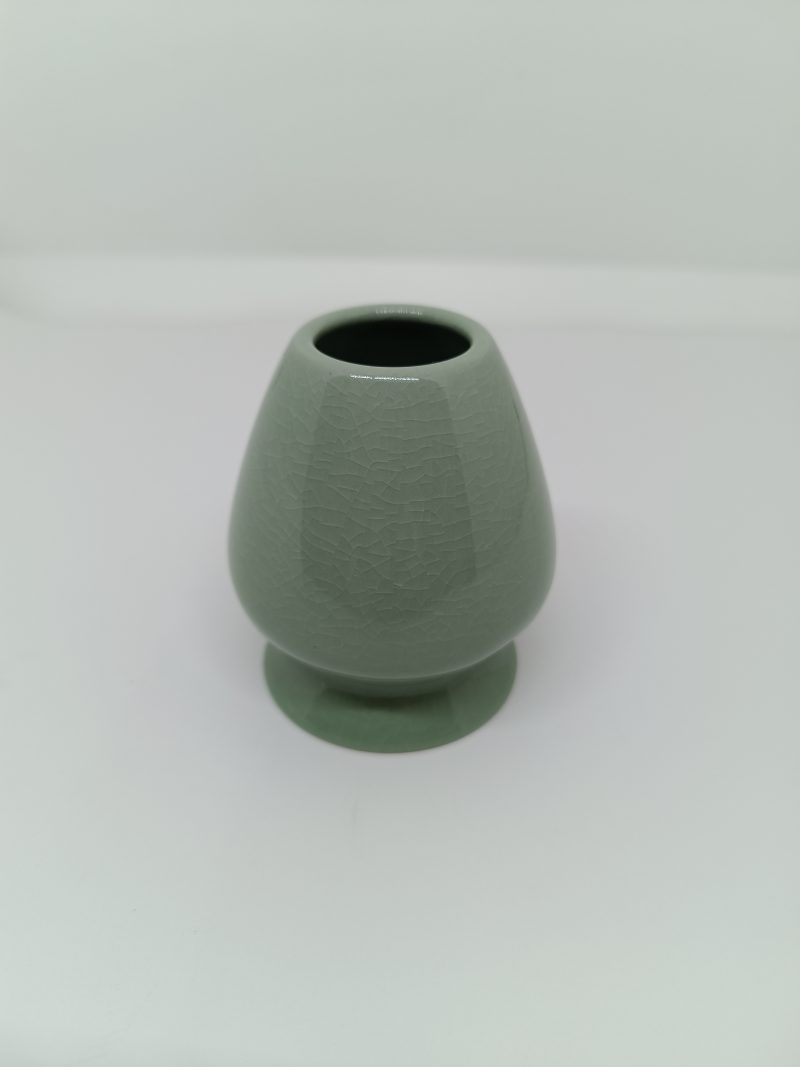 Questo accessorio, realizzato da un unico pezzo di legno di bambù intagliato è il frustino per miscelare nell’acqua il pregiato tè in polvere matcha, per renderlo spumoso.