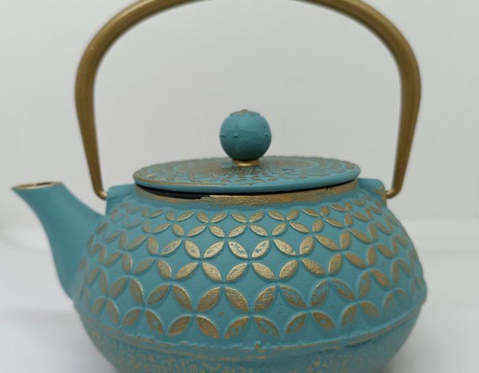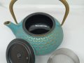 Teiera in ghisa azzurra ottanio e oro, capacità 600ml con filtro inox ed interno smaltato