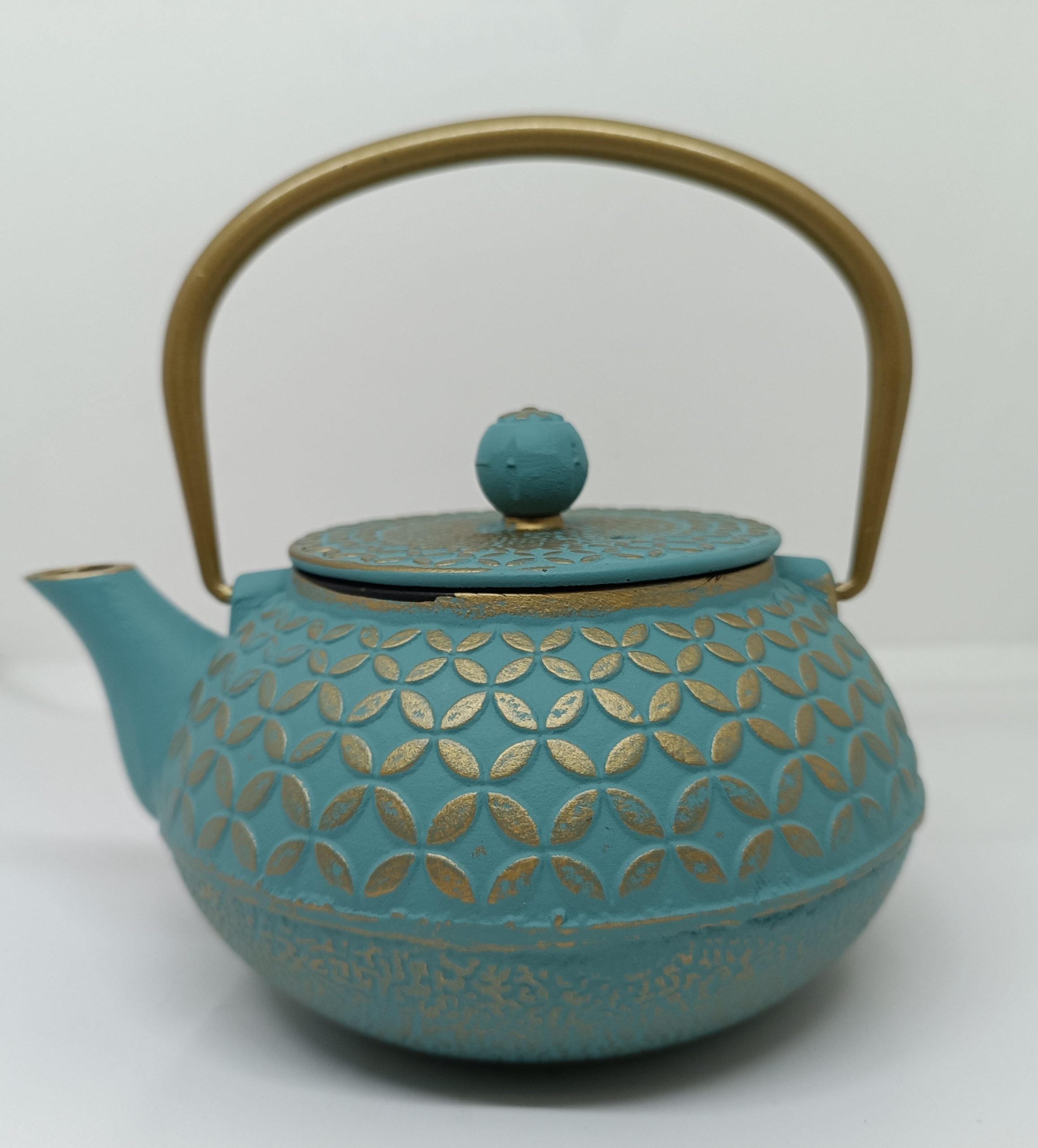 Teiera in ghisa azzurra ottanio e oro, capacità 600ml con filtro inox ed interno smaltato