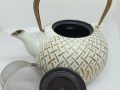 Teiera in ghisa bianca e oro, capacità 800ml con filtro inox ed interno smaltato